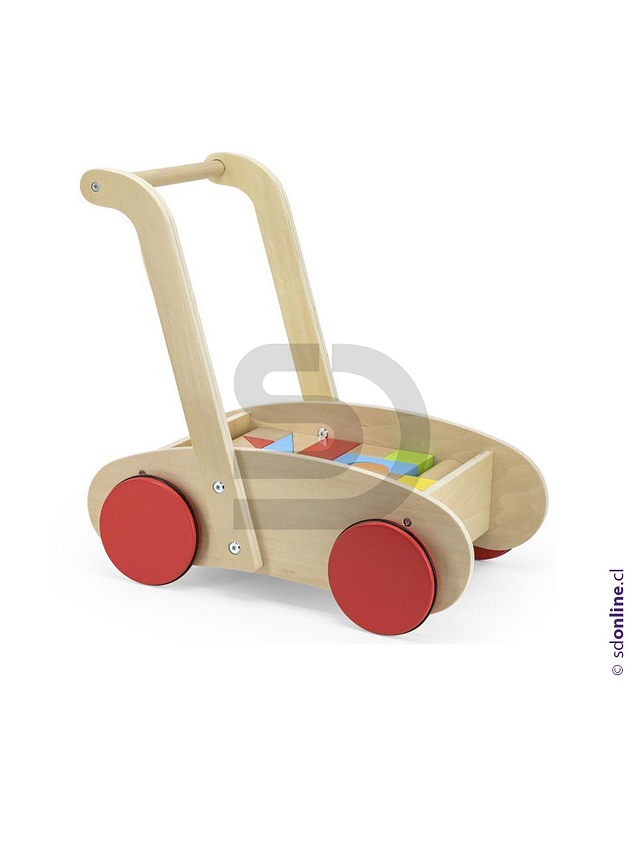 Carro de empujar incluye 26 bloques de figuras geométricas en diferentes formas, tamaños y colores. Estimula el juego de roles, promueve la creatividad e imaginación en los niños. Material madera. Sus dimensiones son 2 x 4 cm. la pieza más pequeña y 40 x 30 x 40 cm. el carro. Presentación en caja.