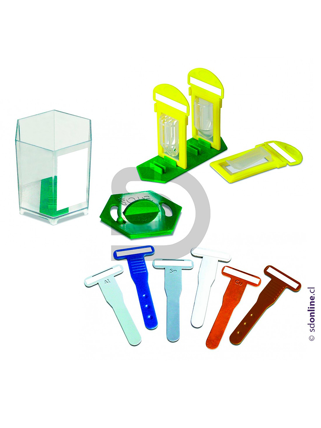 Herramienta de gran utilidad para demostrar que materiales son bio-degradables .Se pueden hacer pruebas en diferentes medios sólidos y líquidos a elección (no suministrados,tierra,agua,etc). Contiene 6 contenedores especialmente diseñados, 6 marcos de clip, 6 marcos de jaula abiertos y 6 marcos de jaula cerrada para mantener los materiales en su lugar. Además, el kit incluye 6 secciones de cobre, aluminio y estaño, 6 secciones en T de cartón, 6 secciones de plásticos en caliente y en agua fría, secciones T y muestras de película de degradación rápida para experimentar. Se proporciona una guía para el tutor o profesor con instrucciones detalladas, explicaciones y sugerencias de experimentos.Tamaño de cada vaso 12x5cms apróx.