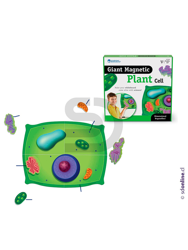 Modelo célular de una planta seccionada en material goma eva, para proporcionar una vista transversal para mostrar y nombrar las partes de una célula vegetal. Incluye guía de actividades con información detallada sobre las células de la planta.