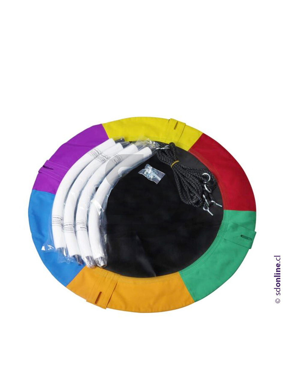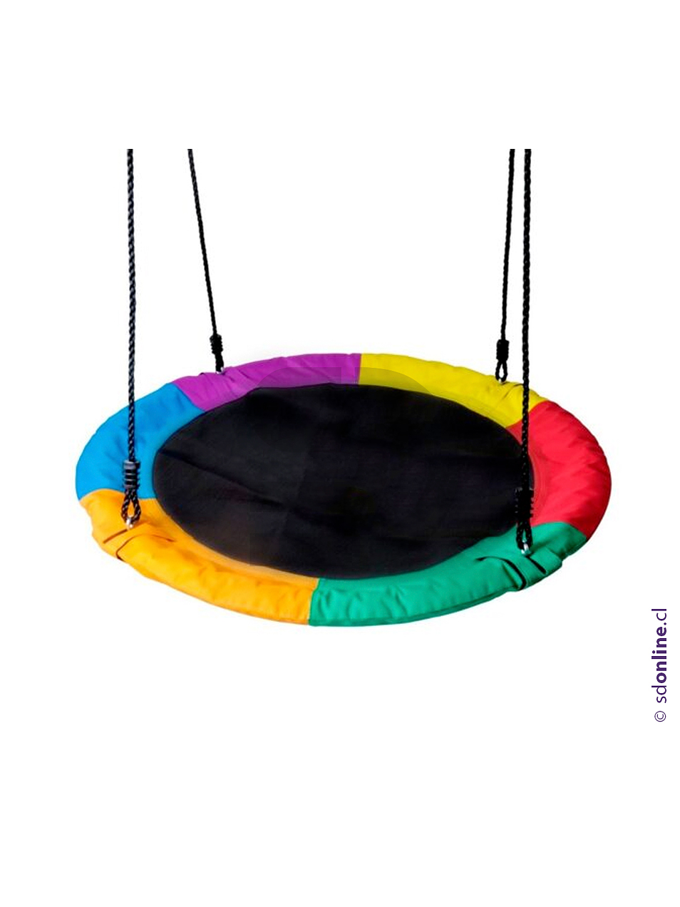 Desarrolla el sistema vestibular (sensacion de volar) permite que un niño se de cuenta de su entorno y comience a comprender el mundo que lo rodea.Estimula el cerebro:los movimientos rotativos, el equilibrio,los balanceos y giros estimulan simultáneamente diferentes partes del cerebro del niño, lo que favorece el desarrollo de las vías interconectadas en el cerebro. Estas conexiones son importantes para la adquisición de competencias tales como la conciencia espacial, el ritmo, el equilibrio o el control muscular.Dimensiones 100 cms de diametro incluye amarres al techo altura regulable.