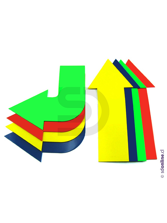 Set compuesto por 8 flechas, mas 2 puntos material goma antideslizante, en diferentes colores. Ideales para ejercicios posturales y de direccionalidad, completar circuitos y juegos de lateralidad.