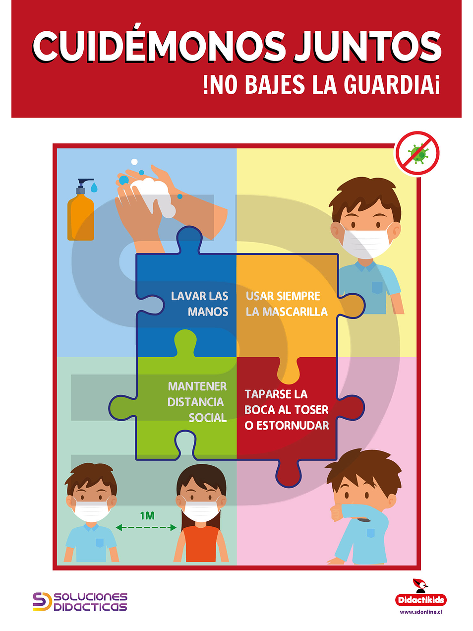 Lámina de 46,7x30,2 cm con medidas de prevención para tomar en tiempos de COVID