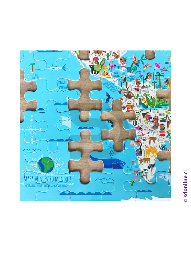 Este mapa es especial, porque su ilustración está inspirada en nuestro mundo. Cada flor, animal y personaje está reinterpretado de fotografías. Manteniendo un especial cuidado en las vestimentas de trajes típicos, y de pueblos originarios.