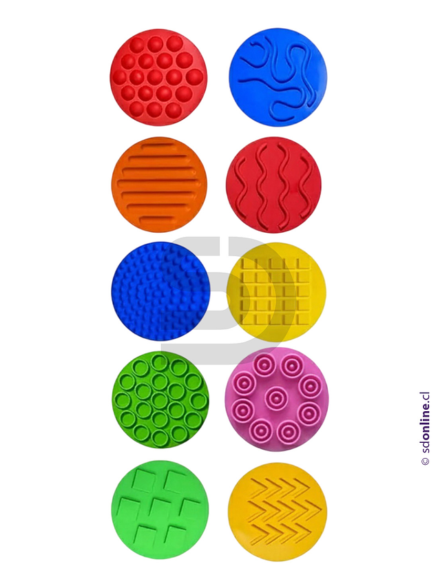 Tapete sensorial de silicona para niños, almohadillas táctiles para juego sensorial.Hecho de silicona, estos discos sensoriales son resistentes para el uso de los los niños, tienen un diámetro de 10 cm, ideales para que interactúen las manos pequeñas. El paquete incluye:10 círculos sensoriales de texturas, para participación en juegos sensoriales, actuarán como calmante y estimulante.