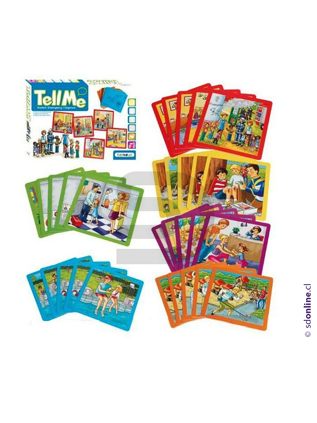 Set de 30 tarjetas (6 situaciones, 5 tarjetas por situación). Secuencias donde se describe un proceso de emergencia. Incluye instructivo. Material plástico flexible.
